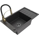 Mexen Elias, 1-komorový granitový drez 795x480x200 mm a drezová batéria Aster, čierna, 6511-77-73450-07