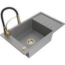 Mexen Elias granitový drez 1-komorový s odkvapávačom a kuchynská batéria Aster, béžový - 6511-69-73450-07